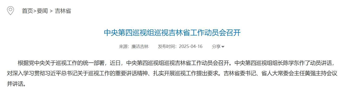 此次李大伟主动投案正值中央第四巡视组在吉林省巡视期间。据长春市纪委监委官方网站4月16日消息,中央巡视组将在吉林省工作2个半月左右,受理信访时间截止到2025年6月23日。