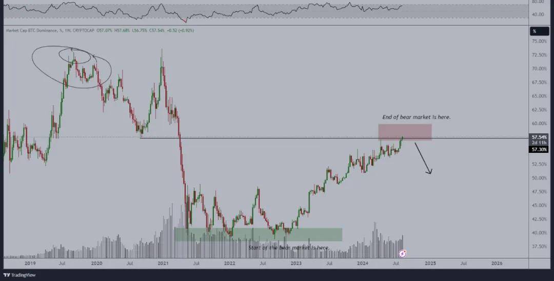 同时, 比特币的主导地位上周飙升至新的短期高点,这是即将出现反弹的强烈信号。 虽然具体时间尚不确定,但这种不断增长的势头表明比特币即将出现大幅上涨。 牛市正在逐渐形成,当牛市全面开始时,比特币预计将经历抛物线式上涨。